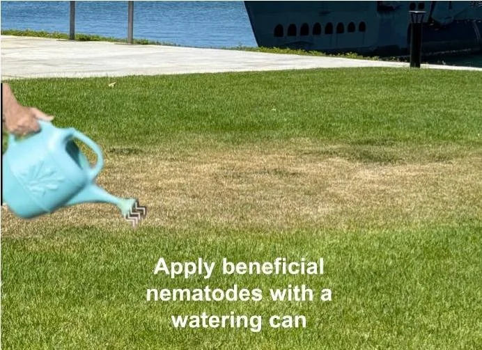 Pre-water your lawn: Moist soil helps nematodes move and survive